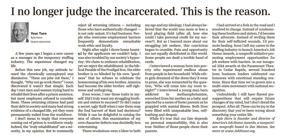 Our founder Kyle Horn recently published an op-ed describing the origins of America's Job Honor Awards (click to read):