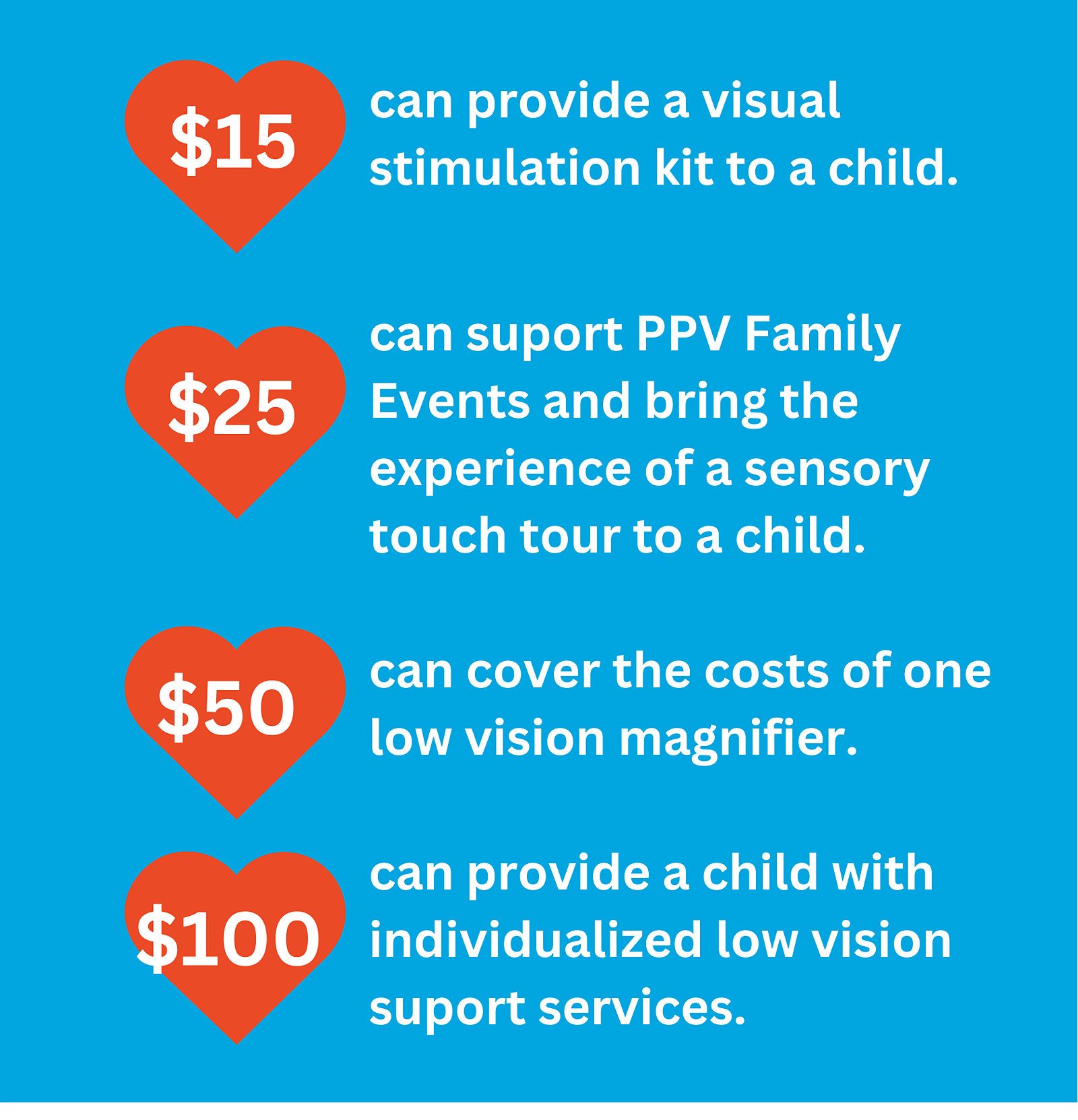 The children and families served by Partners for Pediatric Vision need your support! Our work is made possible by our amazing supporters. Whether you can give $15, $25, $ 50, $100, or more – every dollar positively impacts the lives of the more 550 children we serve annually, and their families. As we kick off the Long Beach Gives campaign, a generous donor has pledged to match every donation up to $1,000. Your gift during Long Beach Gives can now have double the impact! Image Caption