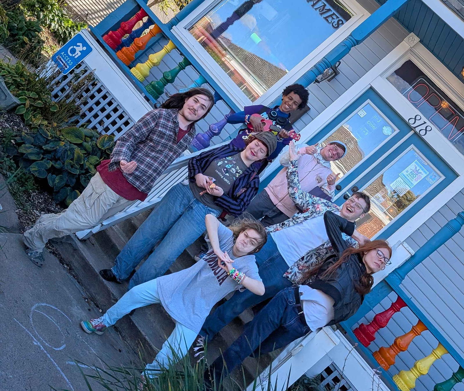 Teen TIGERRS gathered in front of Mischief Toy Store