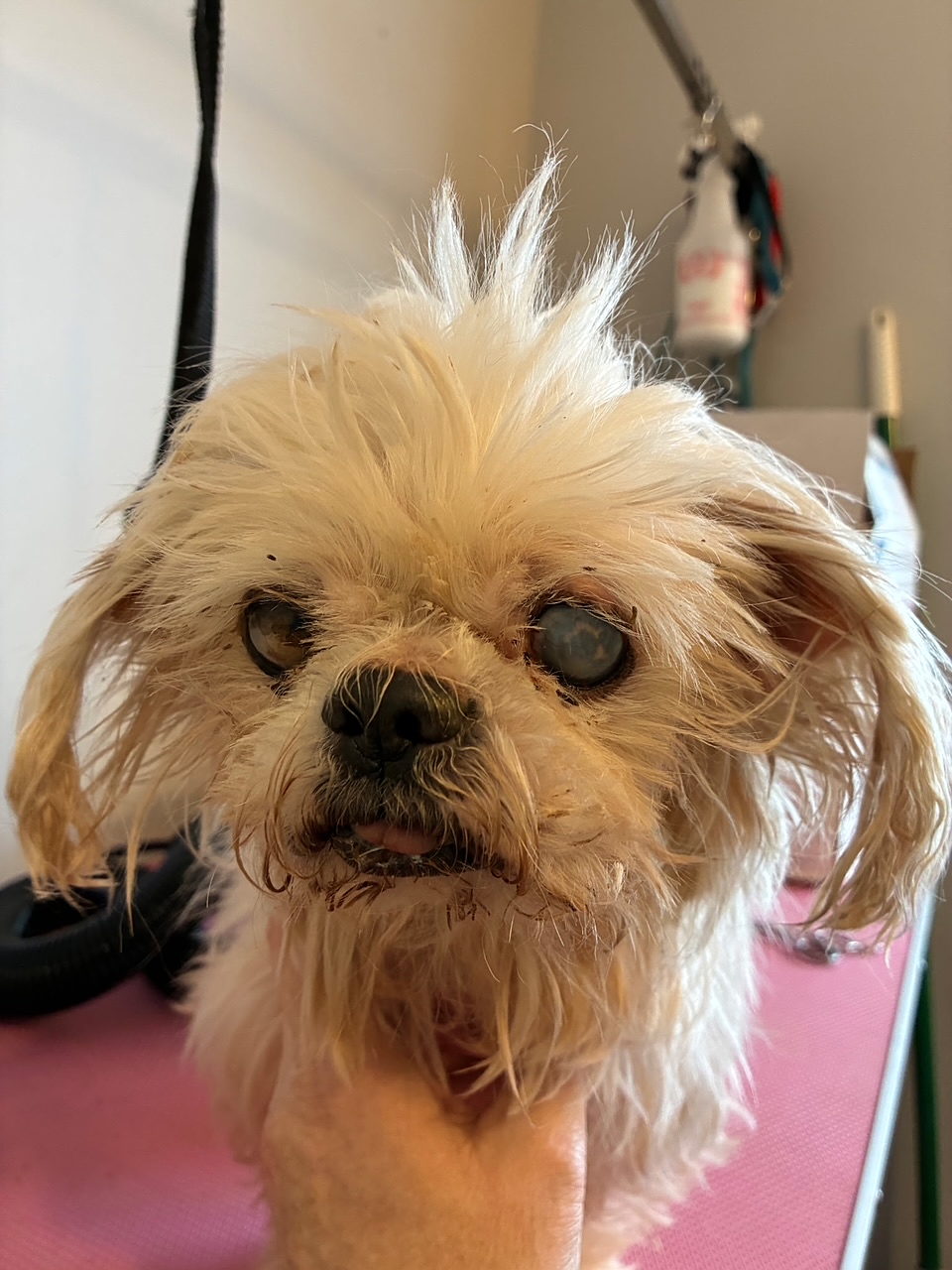 Once again, we cannot fathom who would dump any dog, let alone a sweet boy with eyes so ridden with glaucoma that he is blind. To fend for himself in the freezing cold winter. Unimaginably cruel. Our hearts hurt. We are so tired of saying this.