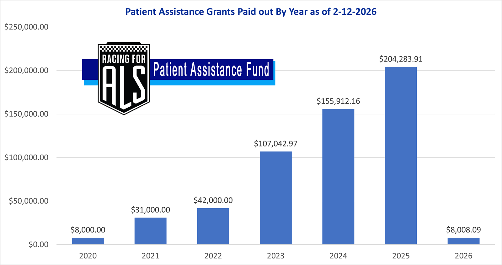 Racing for ALS, Inc. - 501(c)3This page is to make donations directly to our Patient Assistance Grant Fund, instructions are below