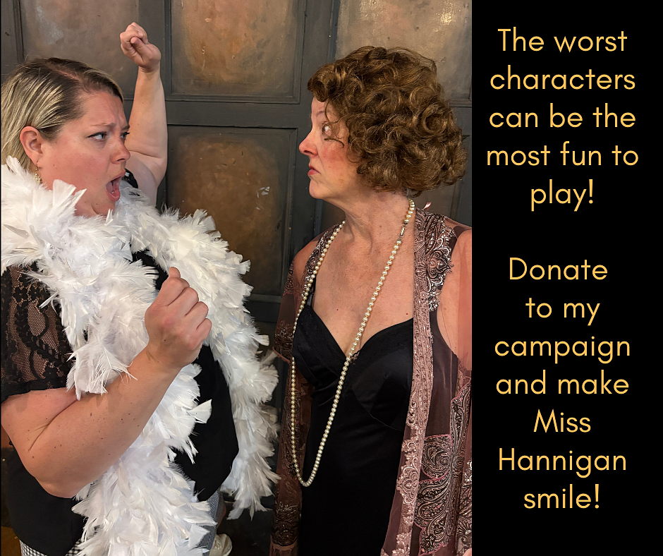 Last summer I got to portray Miss Hannigan in ANNIE, our summer musical. Now Miss Hannigan would like to give back by raising $1,000 (or more!) for HG.